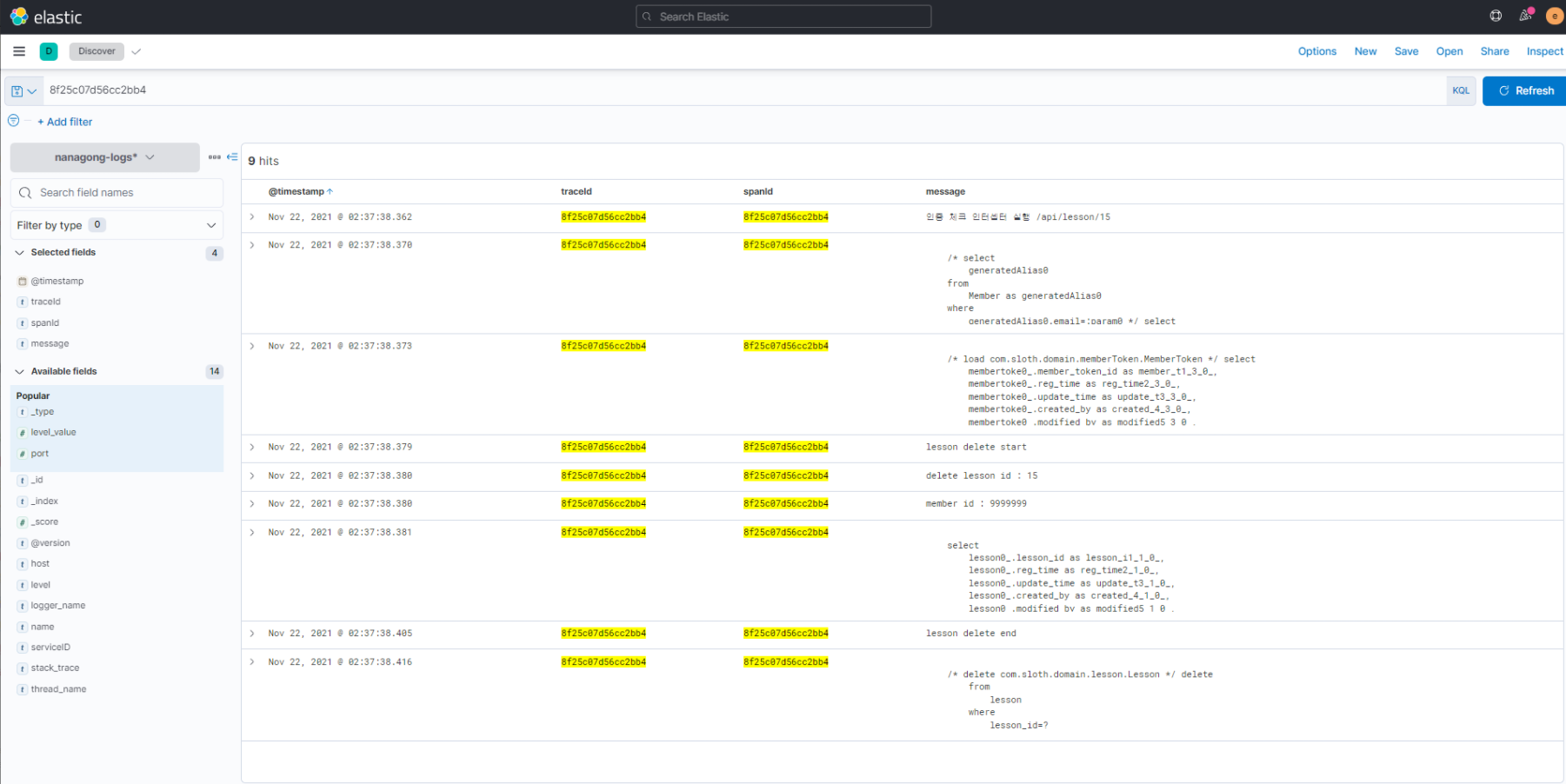 만약 로그를 traceId, spanId별로 보고 싶다면 spring-cloud-starter-sleuth 의존성을 추가한다. msa 환경에서 로그를 추적하기 위해서 많이 사용한다.